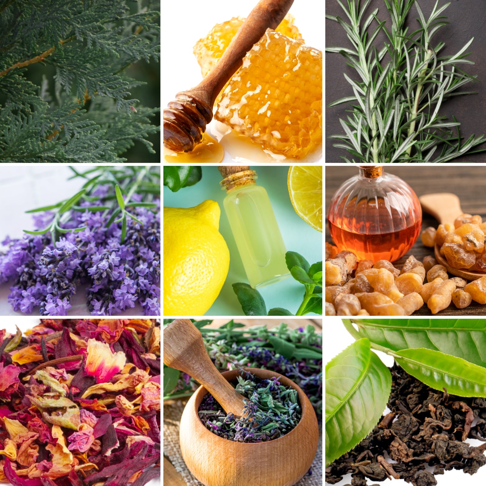 Glycerin Soap (Coconut Oil, Palm Oil, Safflower Oil, Glycerin, Aloe Vera, Purified Water, Sodium Hydroxide, Sorbitol, Propylene Glycol, Sorbitan Oleate, Oat Protein), Lavender Oil, Rosemary Oil, Rose Oil, Frankincense Oil, Lemon Oil, Cypress Oil, Jasmine Oil, Clary Sage Oil, Ylang Ylang Oil, Geranium Oil, Bee Pollen, Matcha Powder.