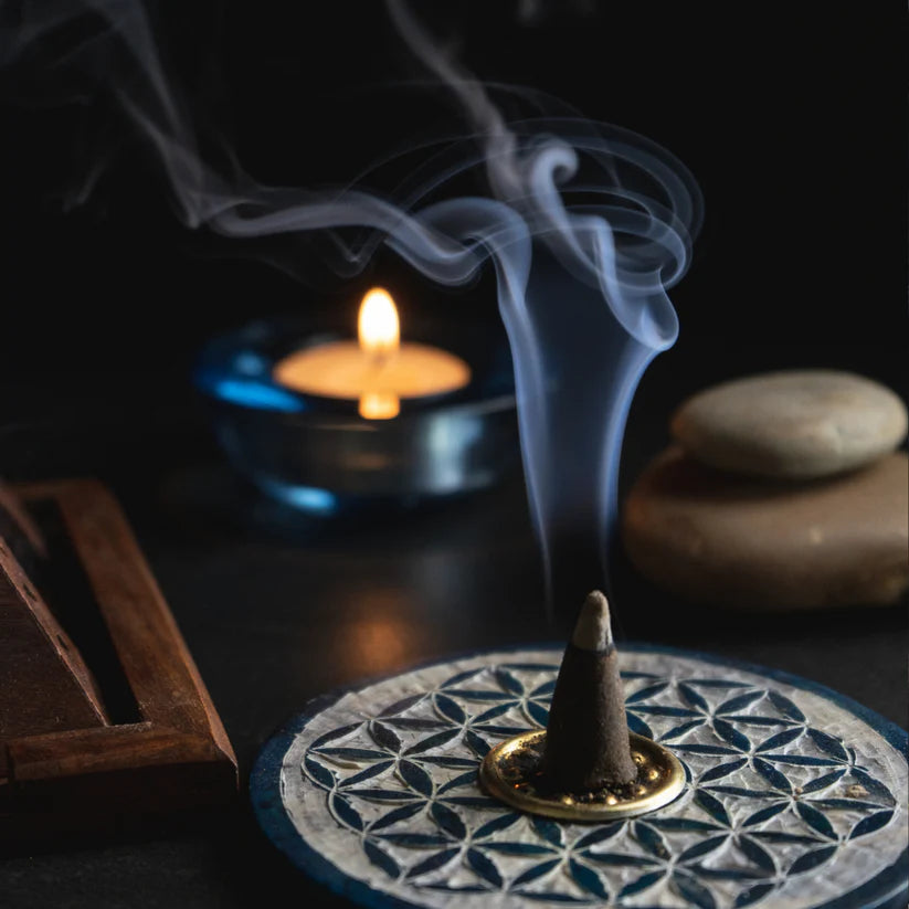 A rich, meditative blend of warm resins, soft florals, and earthy woods—true to the beloved incense with a grounding, nostalgic presence.